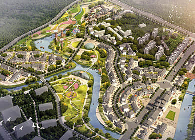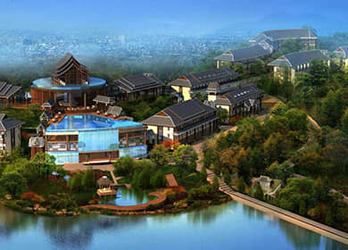 小鎮(zhèn)聚落景觀,多指小鎮(zhèn)居民生活的聚居點,包括居住的建筑,與生活相關的道路、綠化、水系、公共活動空間等生活設施等。康養(yǎng)小鎮(zhèn)設計時,應積極保護并優(yōu)化老街古巷等傳統(tǒng)小鎮(zhèn)建筑,結合當?shù)刈匀簧鷳B(tài)景觀,合理建設養(yǎng)生度假酒店、養(yǎng)老護理中心、頤樂學院等功能建筑,合理規(guī)劃水系、道路及綠化,充分展現(xiàn)小鎮(zhèn)的生態(tài)、特色、自然。