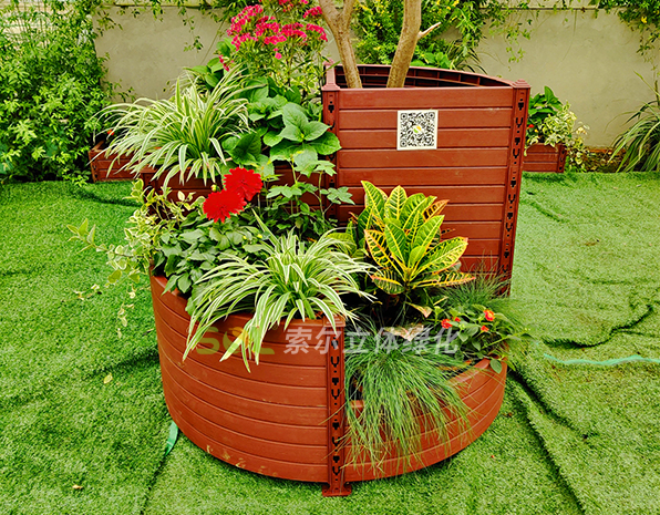 行道樹綠化,可采用組合花盆進行立體造景。利用組合花盆自帶的立體固定柱,固定于行道樹底部,可直接種植花草。 造型一(SL-YH8040)規格:直徑800mm,高度980mm。