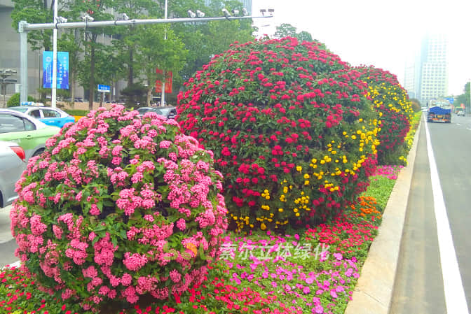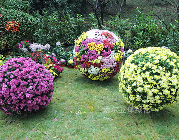 花球既能獨立成景,又可在綠雕中應(yīng)用,方式多樣。節(jié)日、慶典、會議、活動等重要項目都可運用,用紅色系、橙色系、黃色系等花卉,烘托熱烈氣氛。